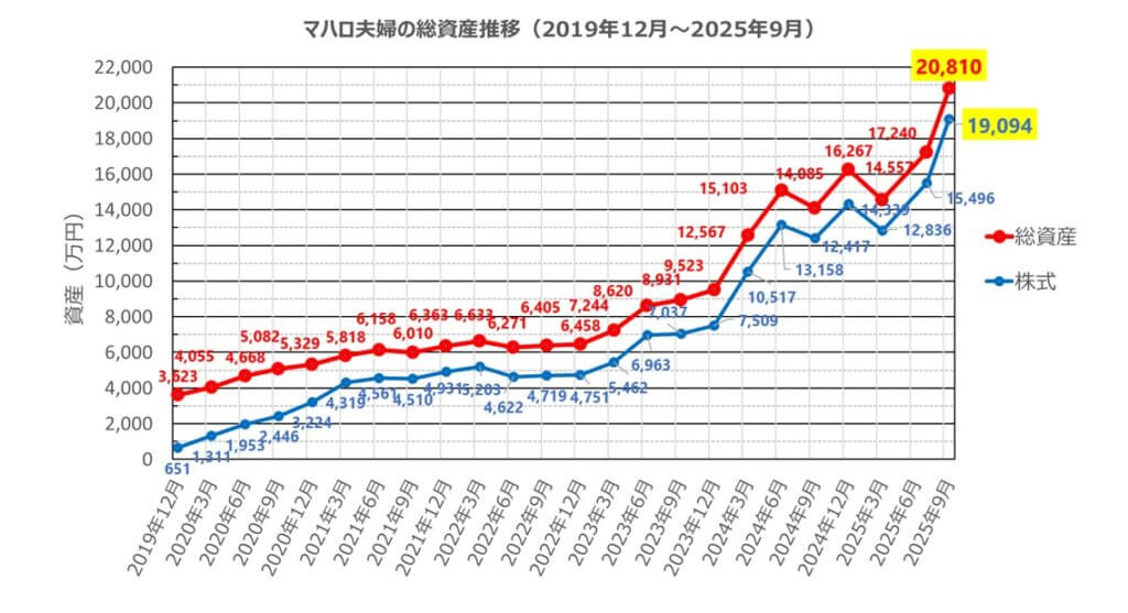 6月から3000万円以上増えて、ついに目標の「夫婦資産で2億円」を突破!✨