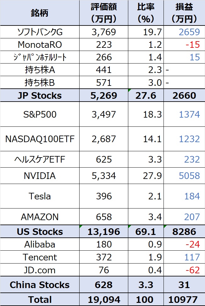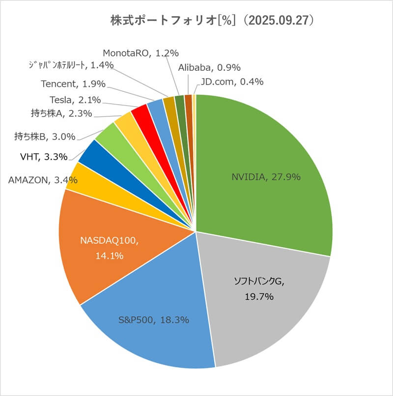 今回計上したタイミングでの株式ポートフォリオはこちら。