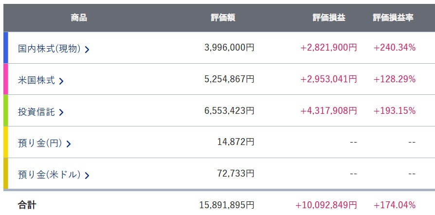 資産は1589万円、運用損益は+1009万円(+174%)!
